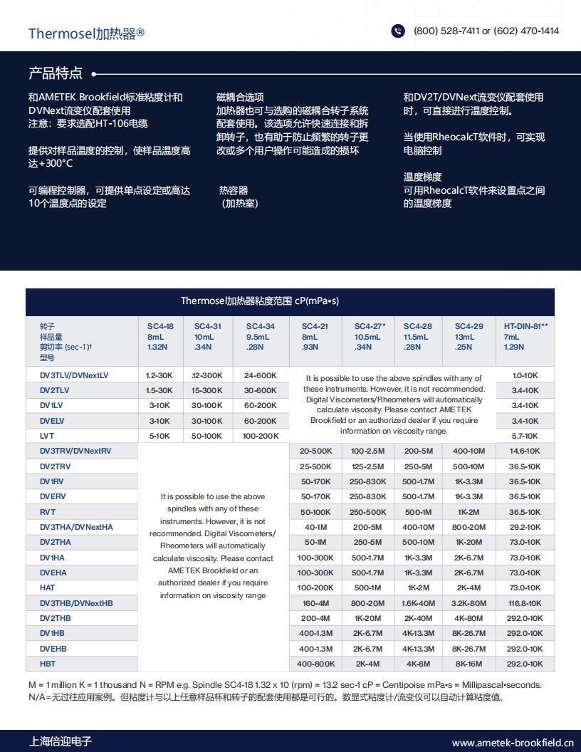 · 可與Brookfield標(biāo)準(zhǔn)粘度計(jì)和DVNext流變儀一起使用